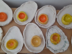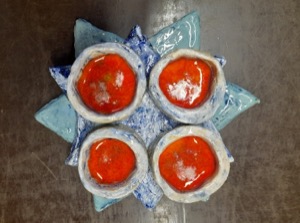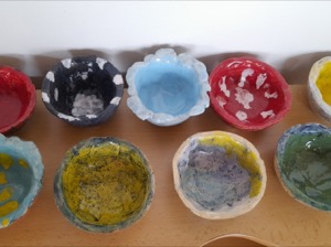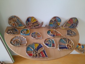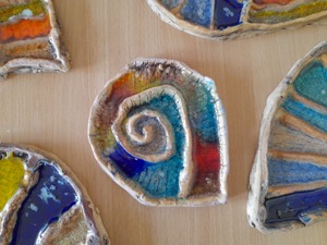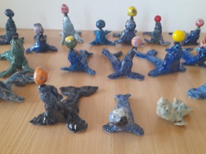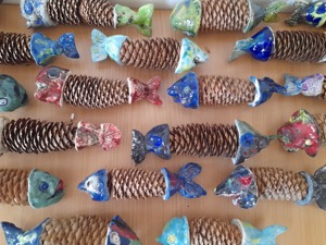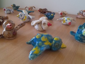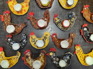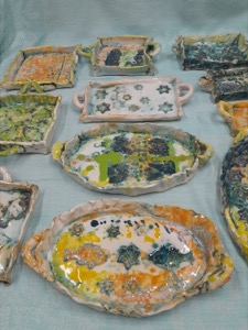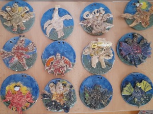 Výběr keramických prací předškolních dětí z třídy Petry Klečkové z let 2023–2025